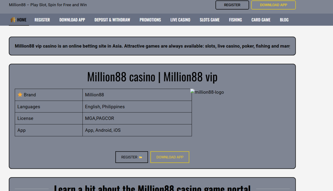 Furthermore, Million88 offers a robust loyalty program. Frequent players are rewarded with cashback incentives and VIP perks that are hard to find elsewhere. If your primary interest lies in the spinning reels, Million88 provides a professional and polished environment that is difficult to beat.